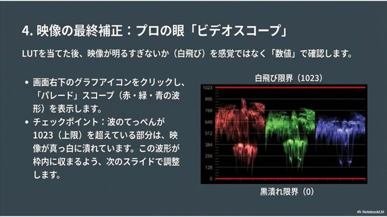 6. ビデオスコープを活用した白飛び防止(技術補正)